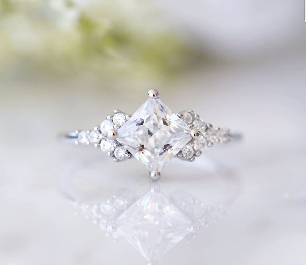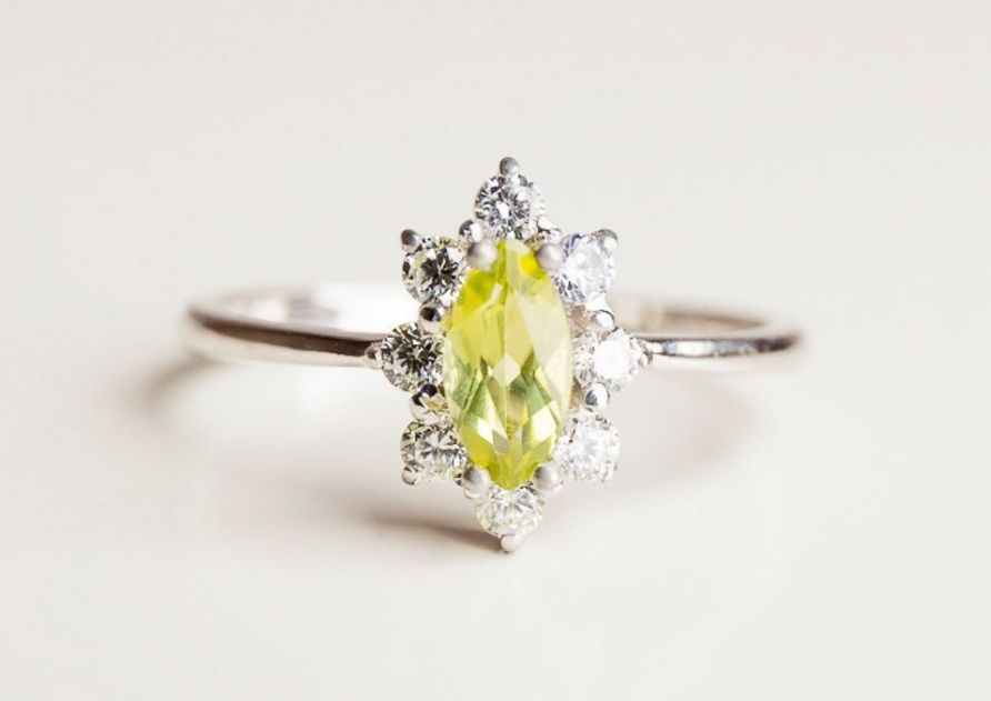 Solid Gold Minimalist Engagement Ring With Real Diamonds